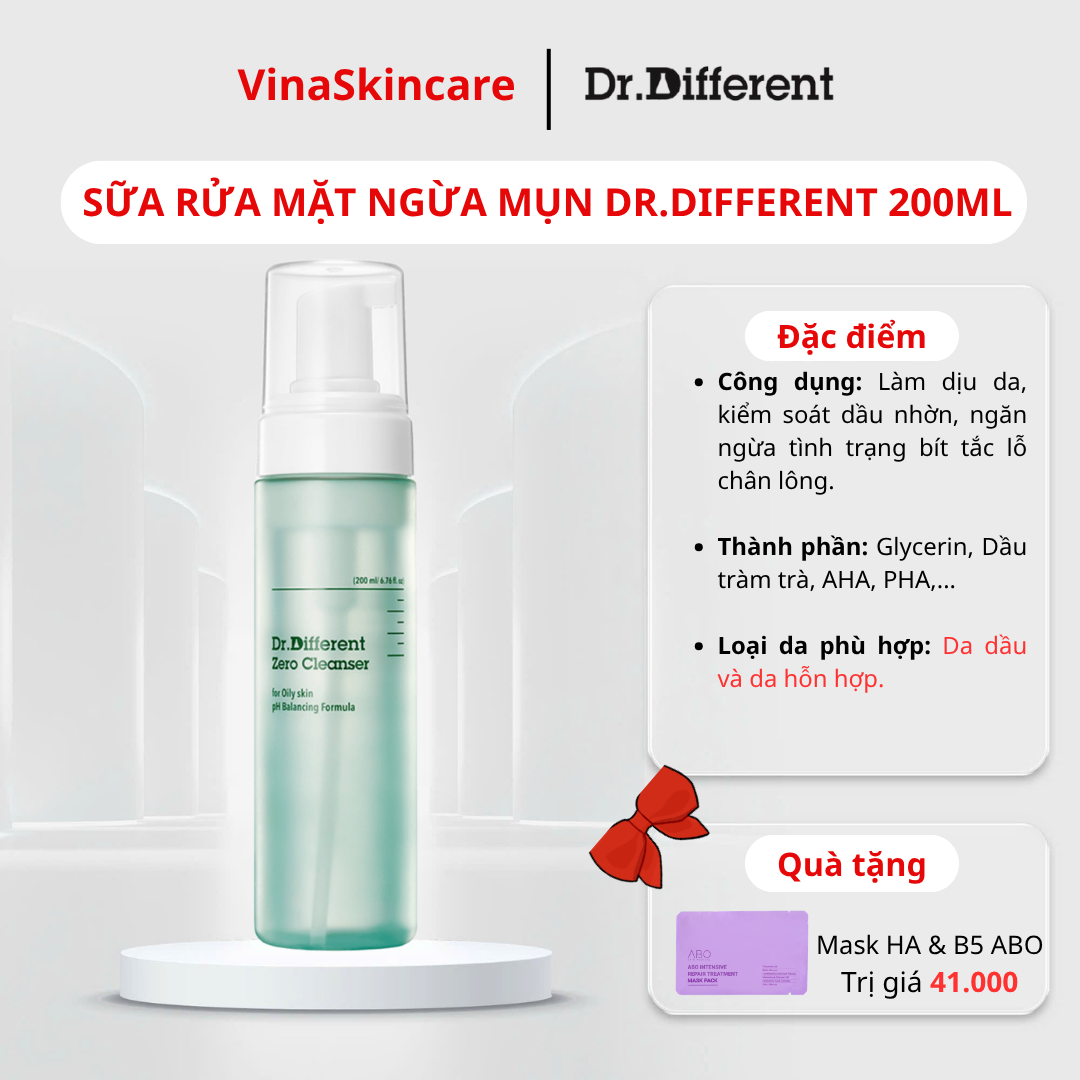 Sữa rửa mặt Dr Different dạng bọt dành riêng cho da dầu và da hỗn hợp. Sản phẩm chứa chiết xuất tinh dầu tràm trà giúp làm dịu da, đồng thời hỗ trợ kiểm soát dầu nhờn hiệu quả. Bên cạnh đó, công thức giúp cân bằng độ pH và duy trì độ ẩm tự nhiên của da sau khi làm sạch.