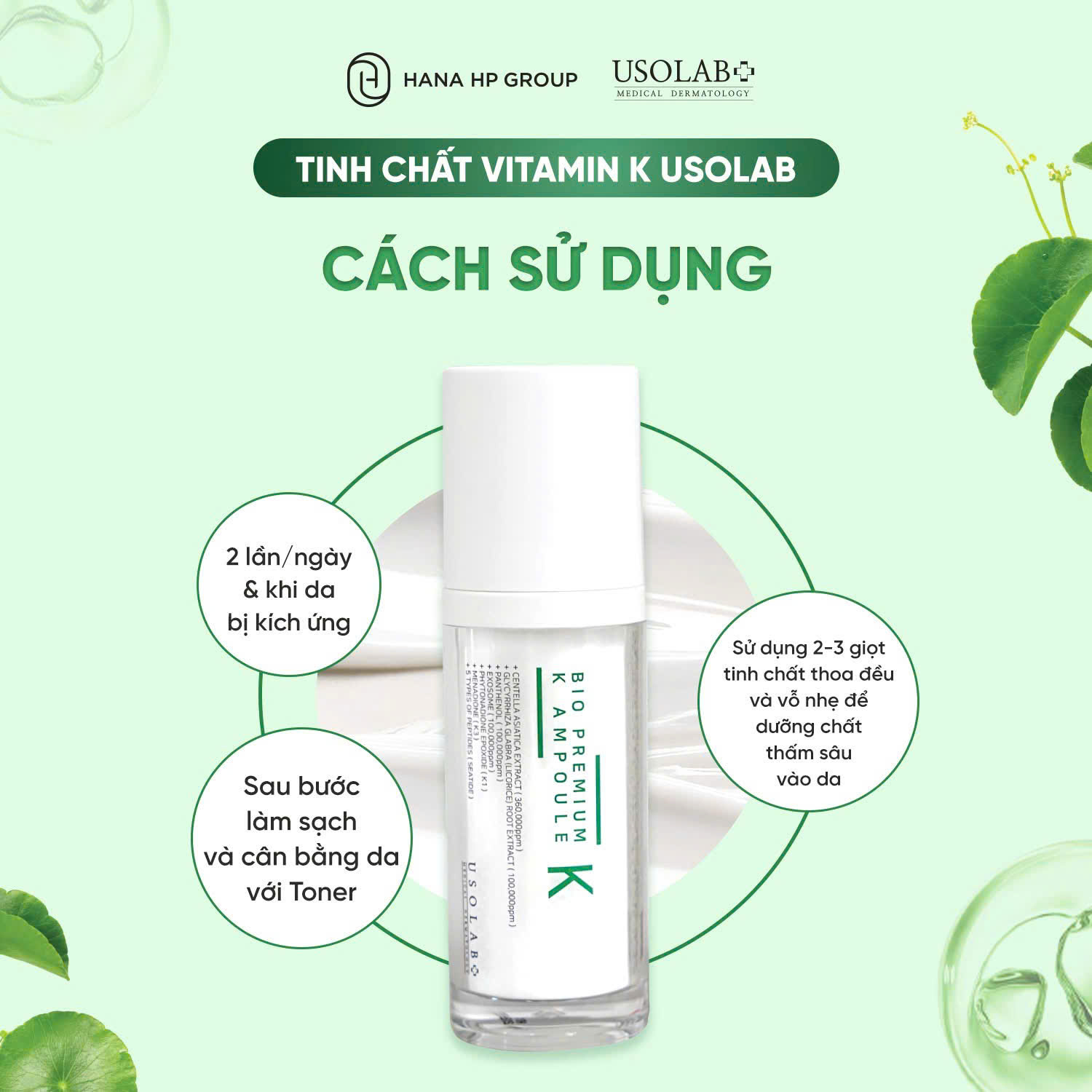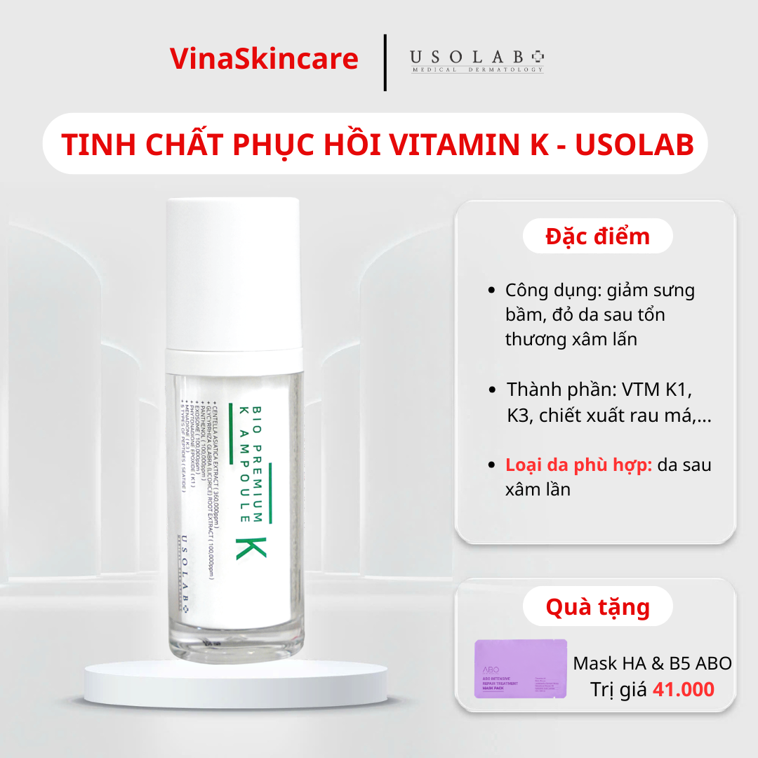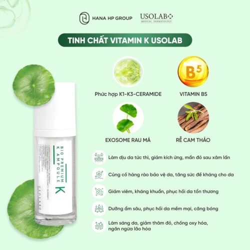 Phức hợp K1, K3, 1% Kojic acid, rễ cam thảo, panthenol, chiết xuất rau má