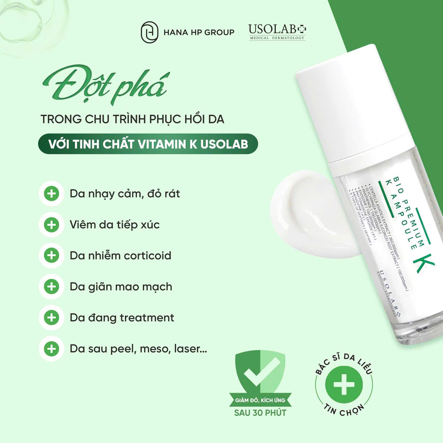Hỗ trợ phục hồi nhanh chóng sau xâm lấn (peel, laser, lăn kim)